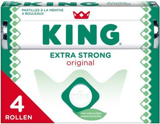 Deze handige 4-pack verpakking maakt het eenvoudig om altijd een rol King Pepermunt Extra Strong bij de hand te hebben of te delen. De meest frisse keuze voor wie van echt sterke pepermunt houdt.