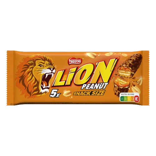 Nestlé Lion Peanut 5-Pack (5x31g) is een krachtige chocoladereep met een combinatie van krokante wafel, zachte karamel en crunchy pinda’s, omhuld met melkchocolade.
