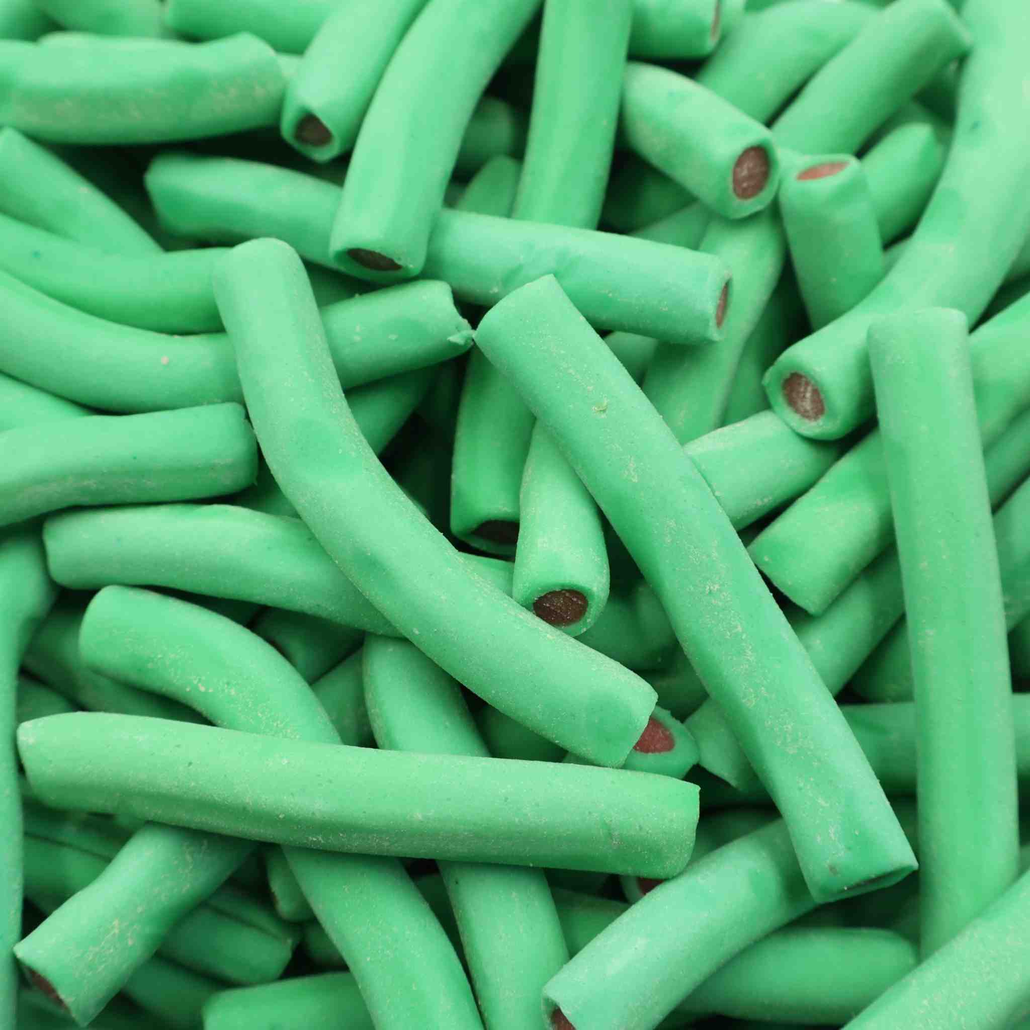 Deze zachte snoepstaafjes hebben een frisse watermeloensmaak, een romige witte kern en een suikerglazuur aan de buitenkant dat zorgt voor de perfecte bite.
