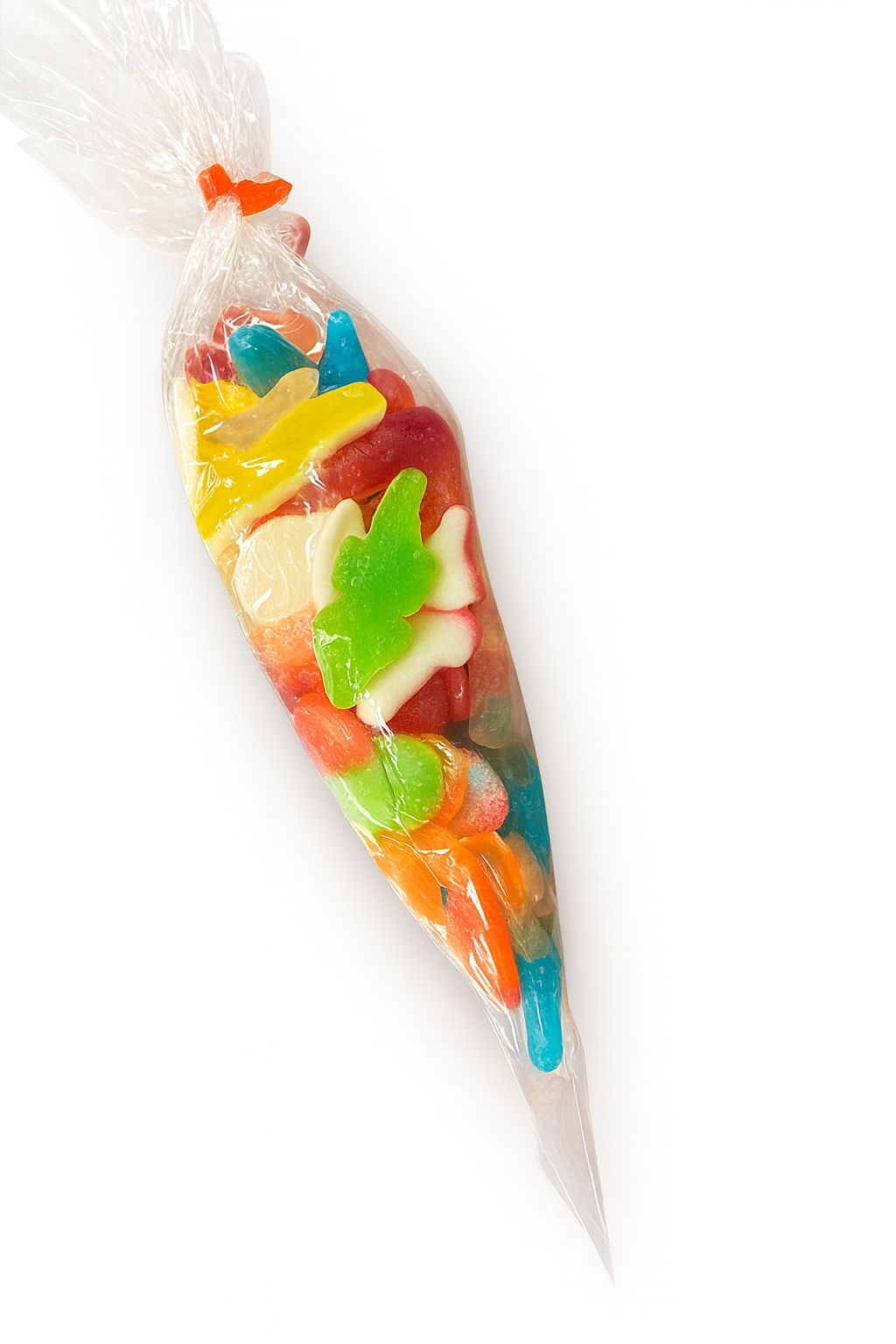 Ingrediënten: glucosestroop, suiker, water, (runder)gelatine, voedingszuur (citroenzuur, melkzuur), acidulant, E330, E270, E296, geleermiddel, pectine, gekaramelliseerde suiker, plantaardige olie (palm, kokos), aroma’s, glansmiddel: bijenwas (wit en geel), carnaubawas, kleurstoffen: E100, E102, E129, E131, E133, E141, E150c, E153, E160c, E161b, E163